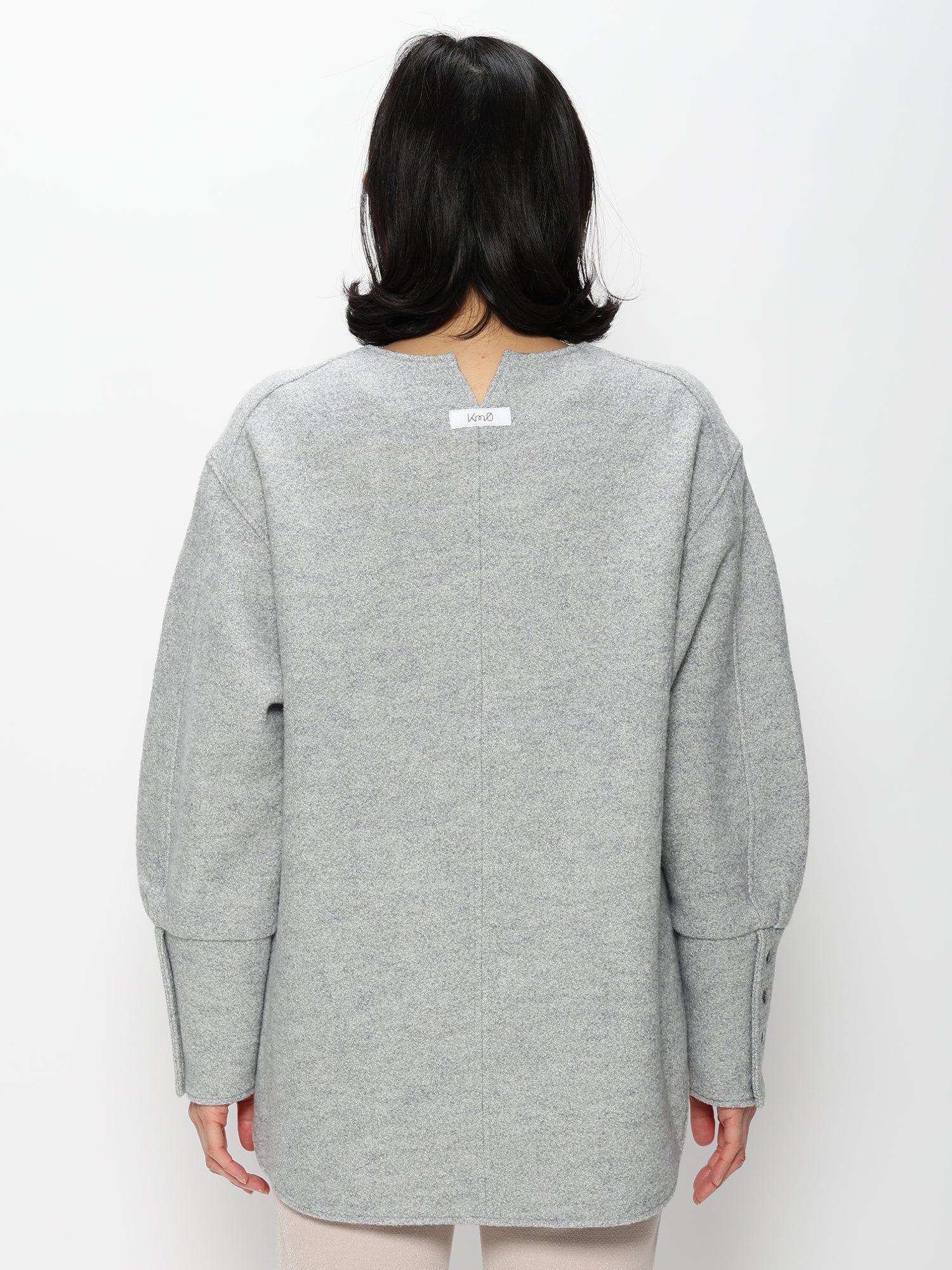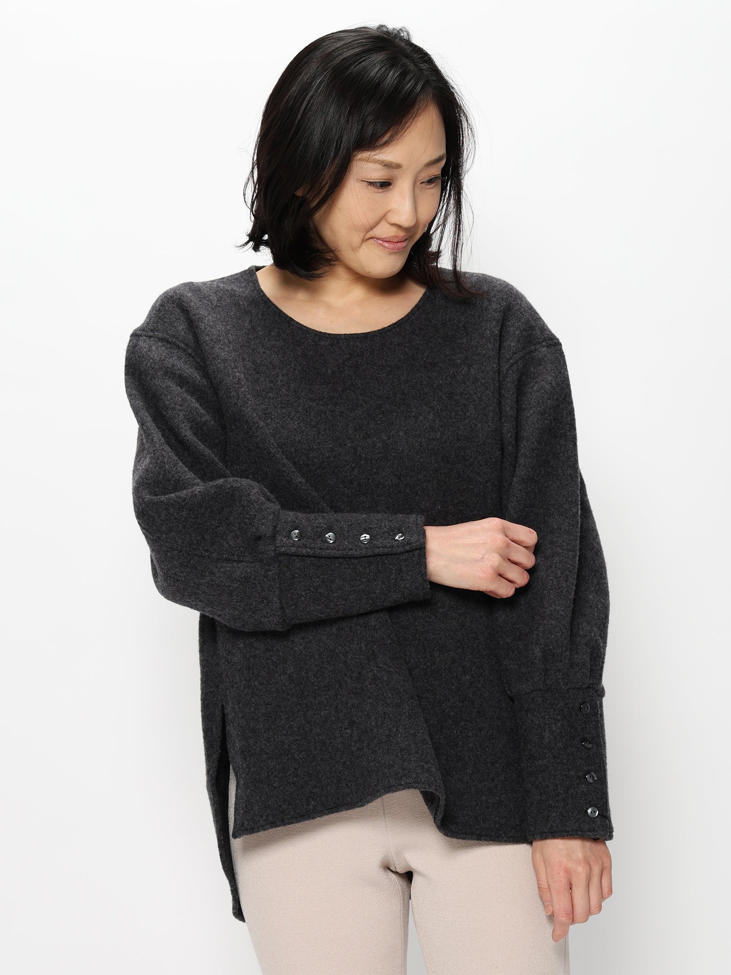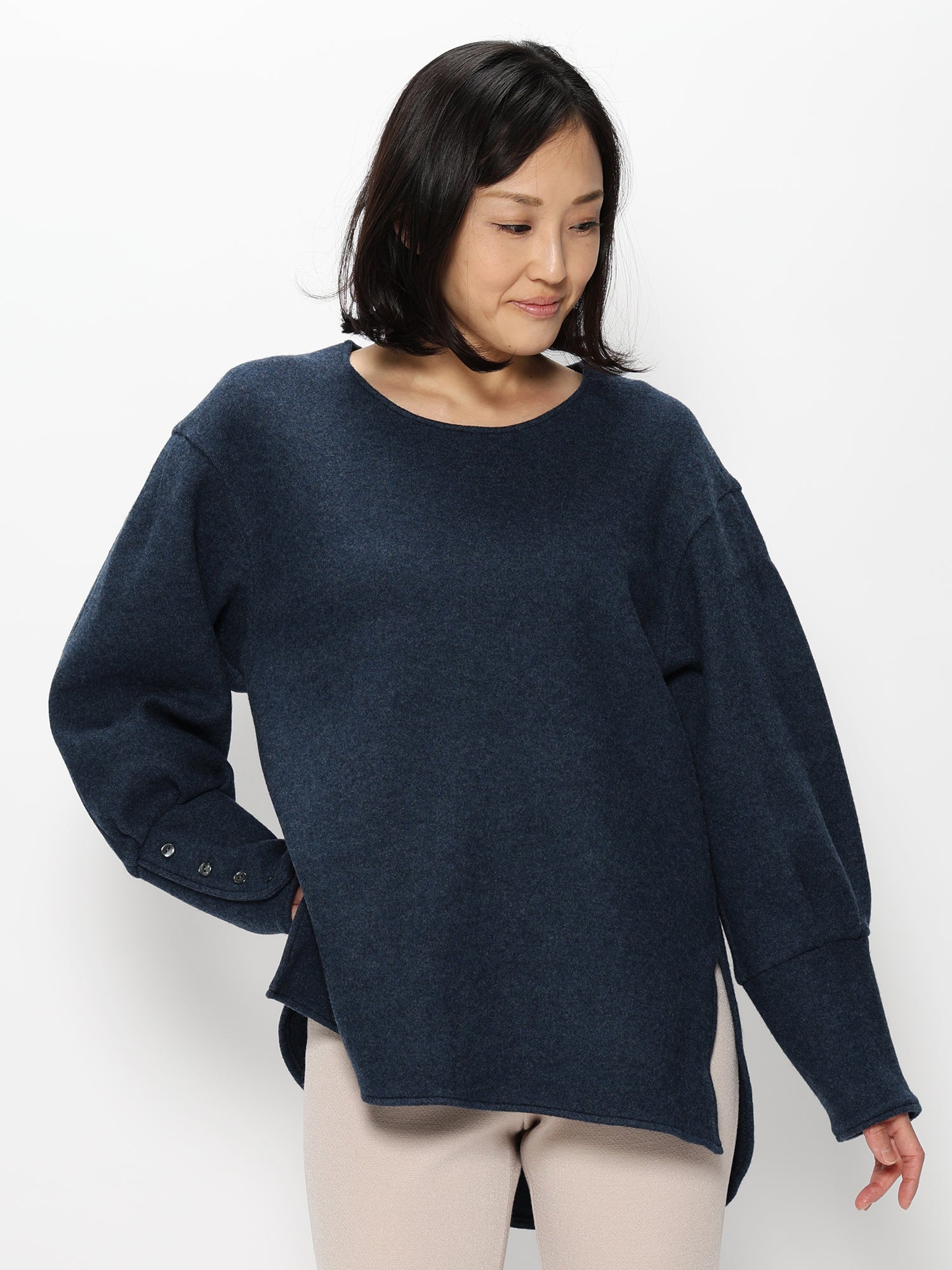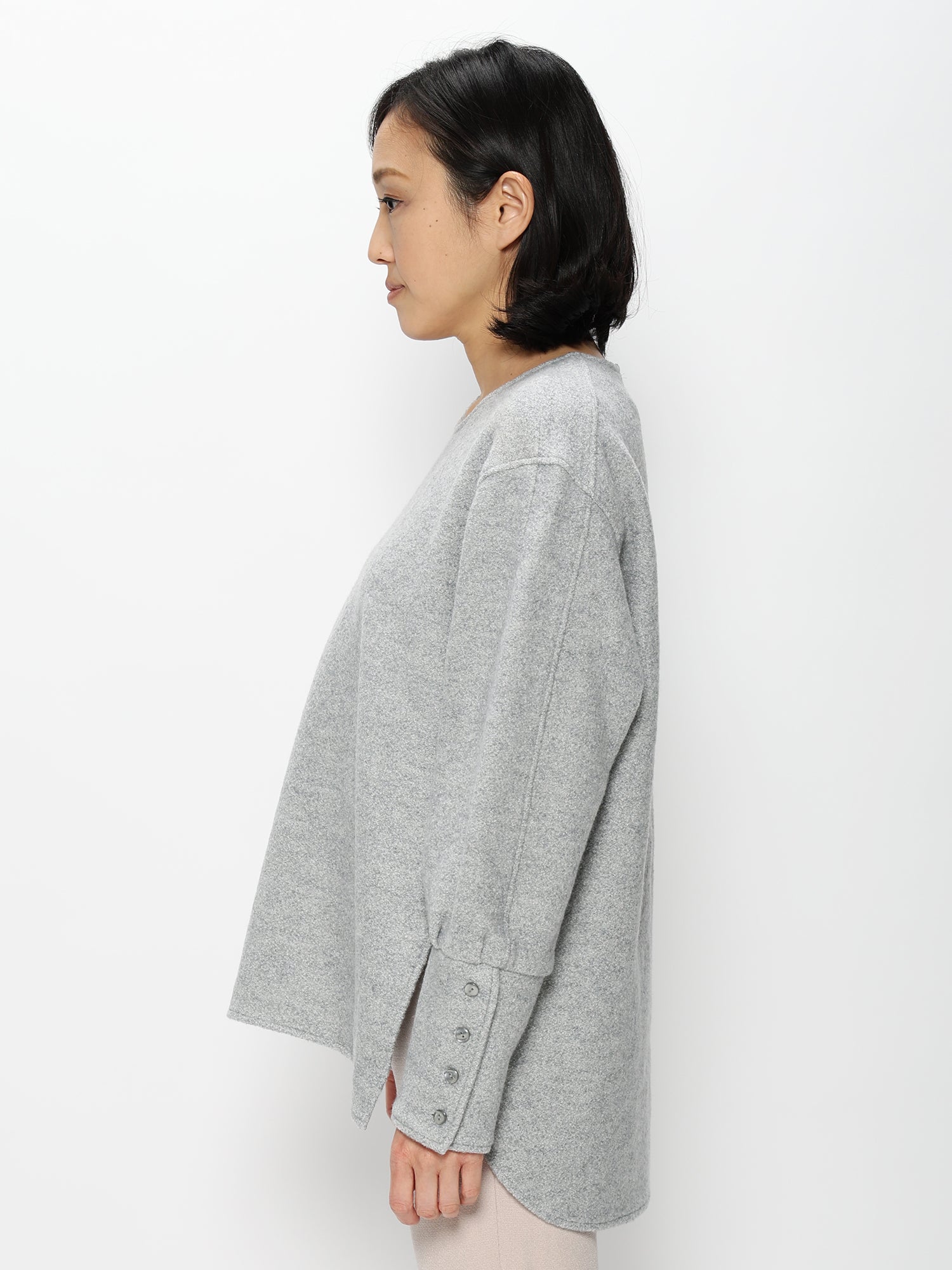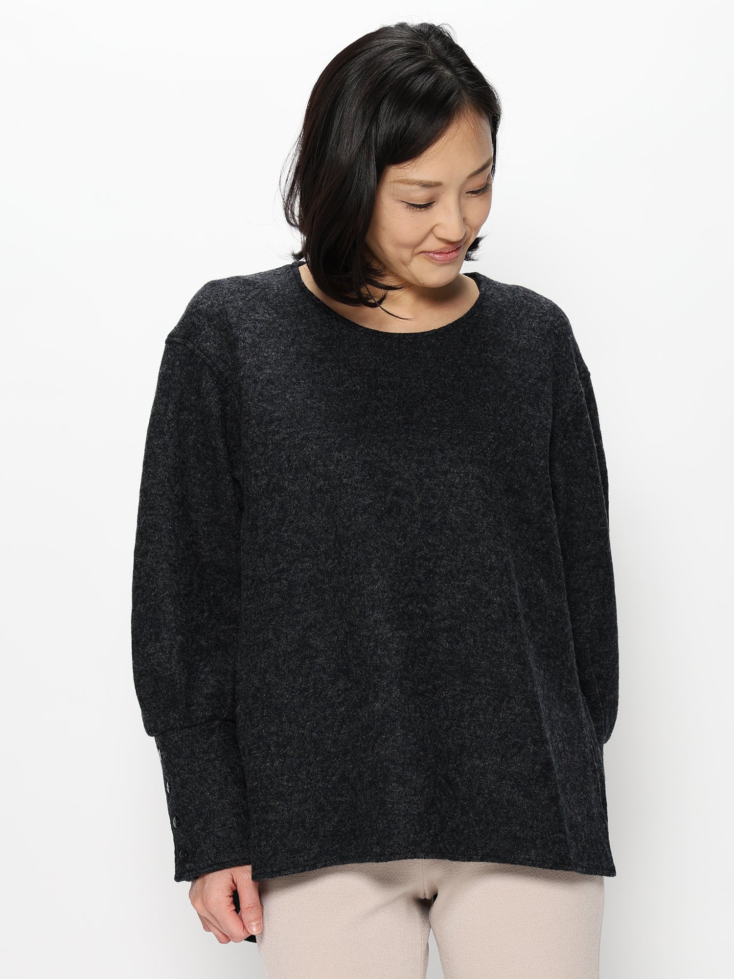 このクルーネックの縮絨ニットは、ゆったりとしたシルエットが特長のアイテムです。柔らかく軽やかな縮絨加工が施され、快適な着心地と保温性を提供します。クルーネックデザインはシンプルでベーシックな印象。幅広いスタイリングに適応し、オフィスからカジュアルまで様々なシーンで活躍します。寒い季節に温かさとスタイルを兼ね備えた、おしゃれなニットです。