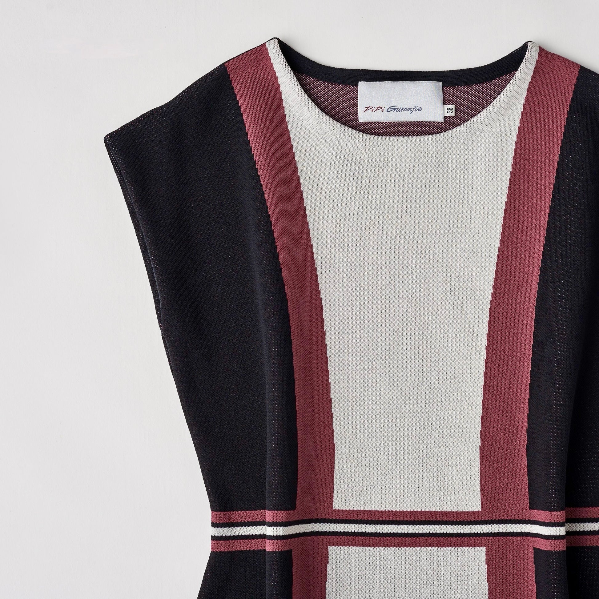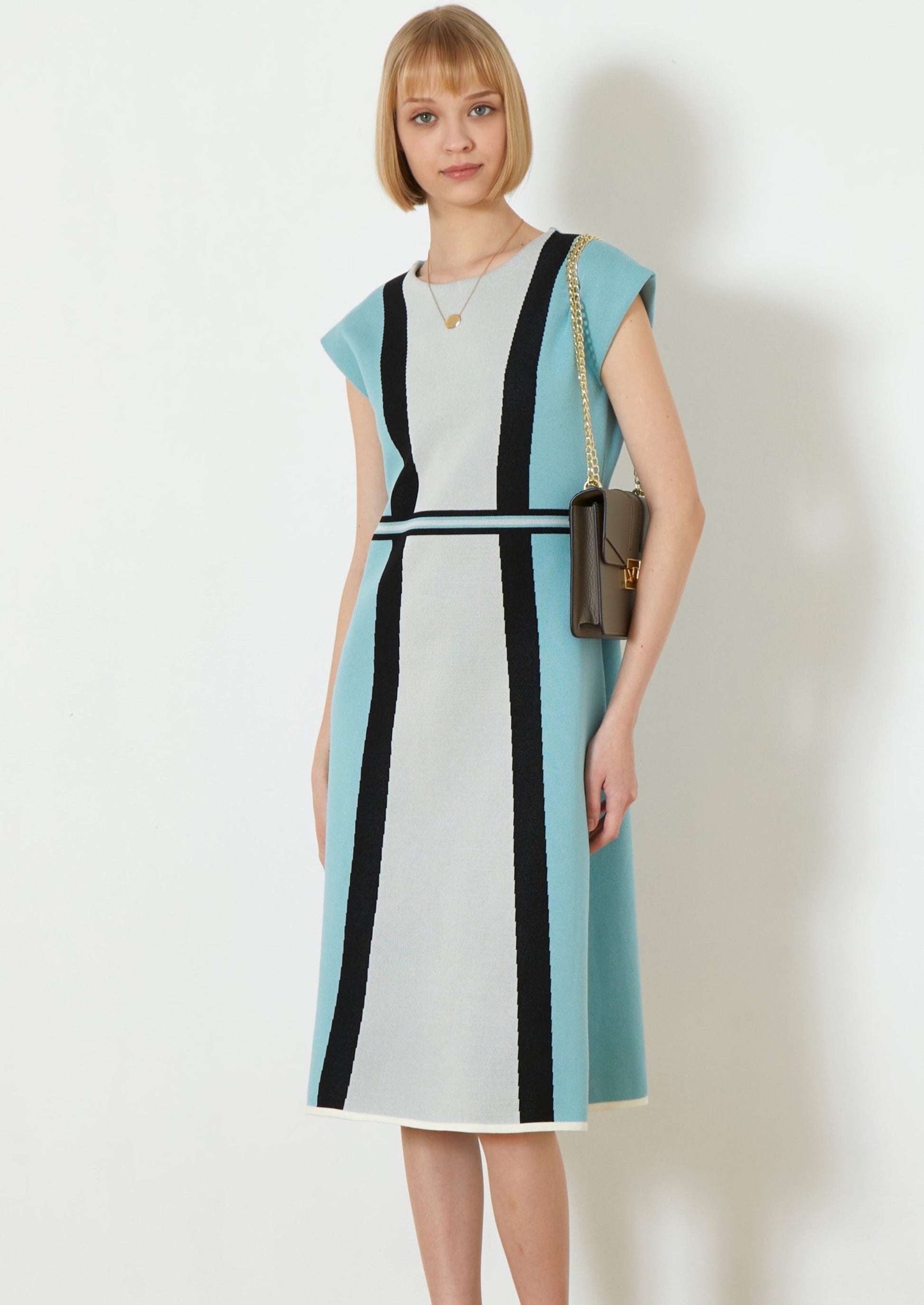 DiDi Guranjie バイカラーラインジャガードワンピース