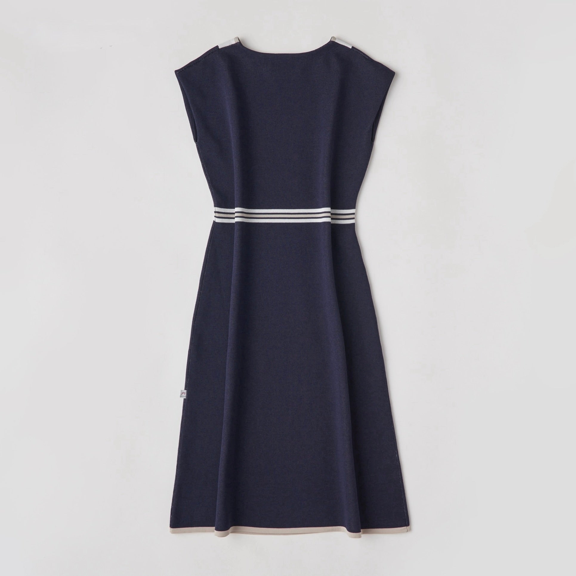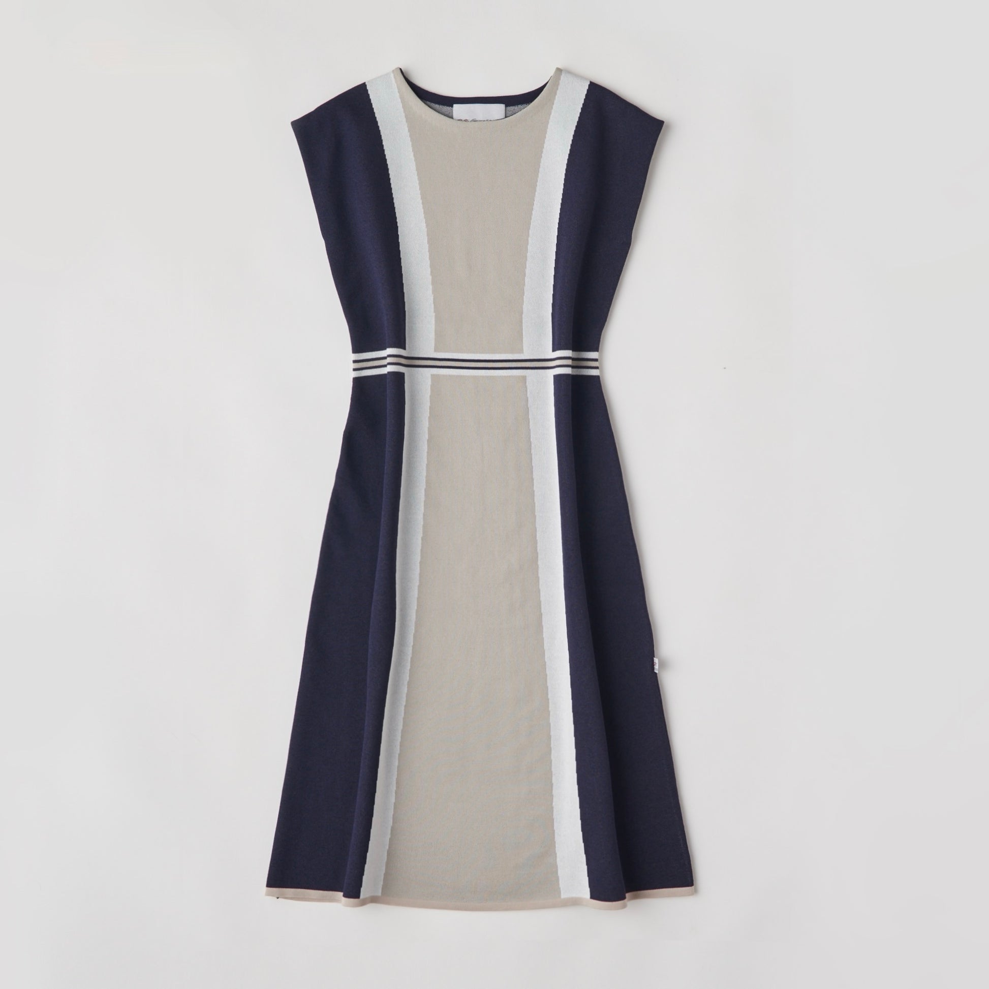 毎年人気のジャガードワンピースが、今年は洗練されたバイカラーのラインデザインで登場。ウエストを程よく絞り、裾にかけて美しいAラインシルエットを実現しました。特別な糸を使用することで、いつもより軽やかに仕上がっています。